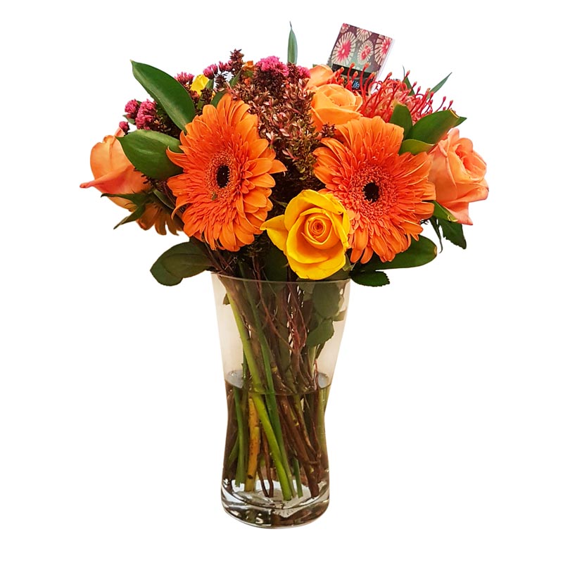 30cm tall Vase presenting vibrant shades of red, yellow, and orange mix vase